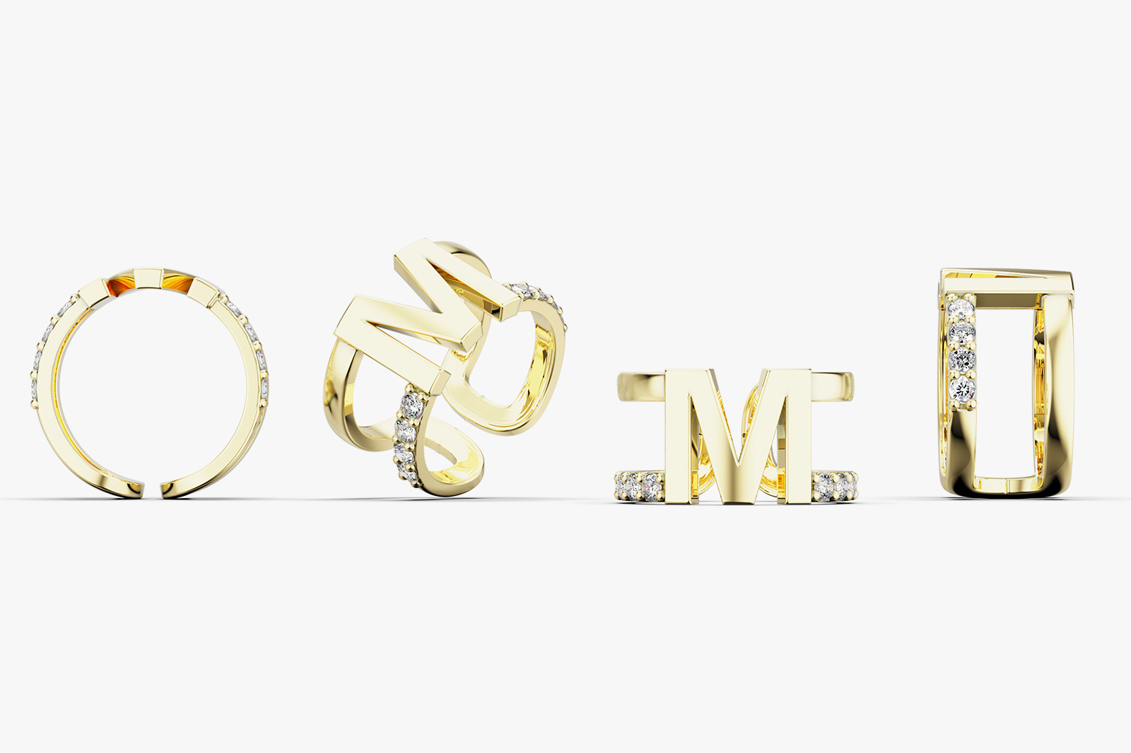 A diamond set band with the initial in the centre. This ring can be created in various precious metals and gemstones.